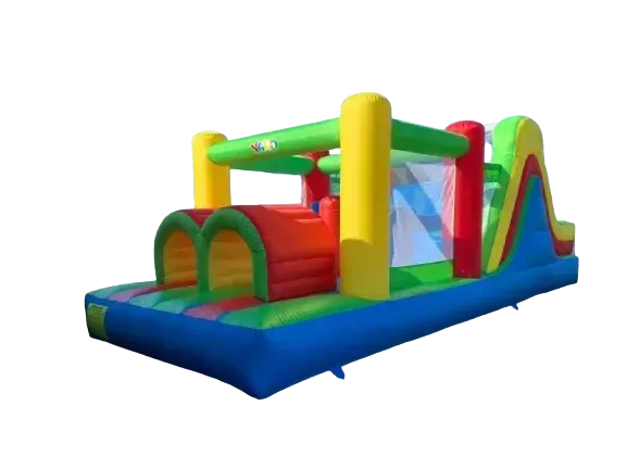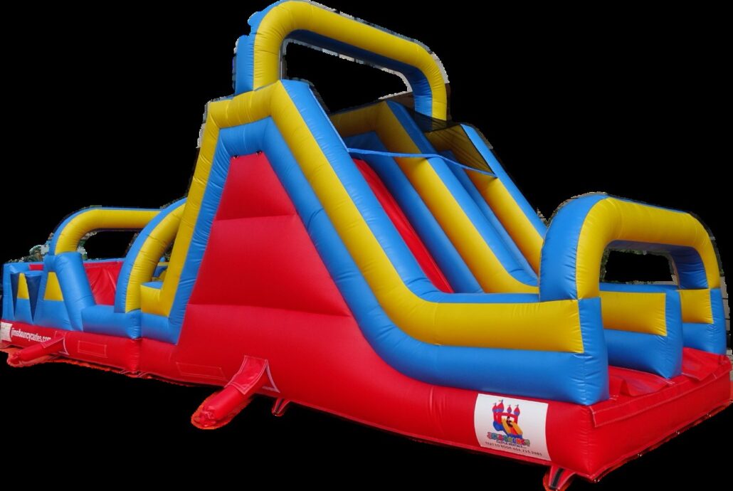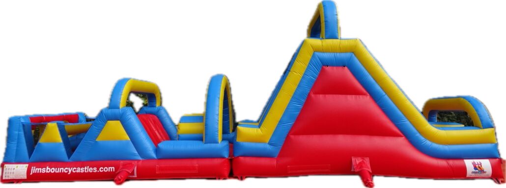 Introducing the 2023 Obstacle Course . It needs a minimums of 25' x 12 ' for optimal use. It is a full obstacle course, with dual tunnels, punching pillars, climbing wall, and high and wide slide. Suitable for all ages, and a 700 lbs max weight capacity. $419 + tax with full service delivery set up and take down.